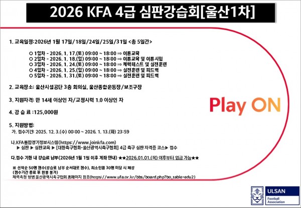 ▶ 울산광역시축구협회 4급심판강습회 ▶ 접수