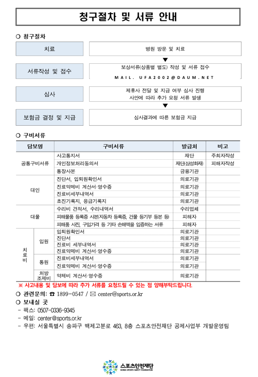 - 담보에 따라 서류 준비 후, 보험사 이메일 또는 팩스로 제출